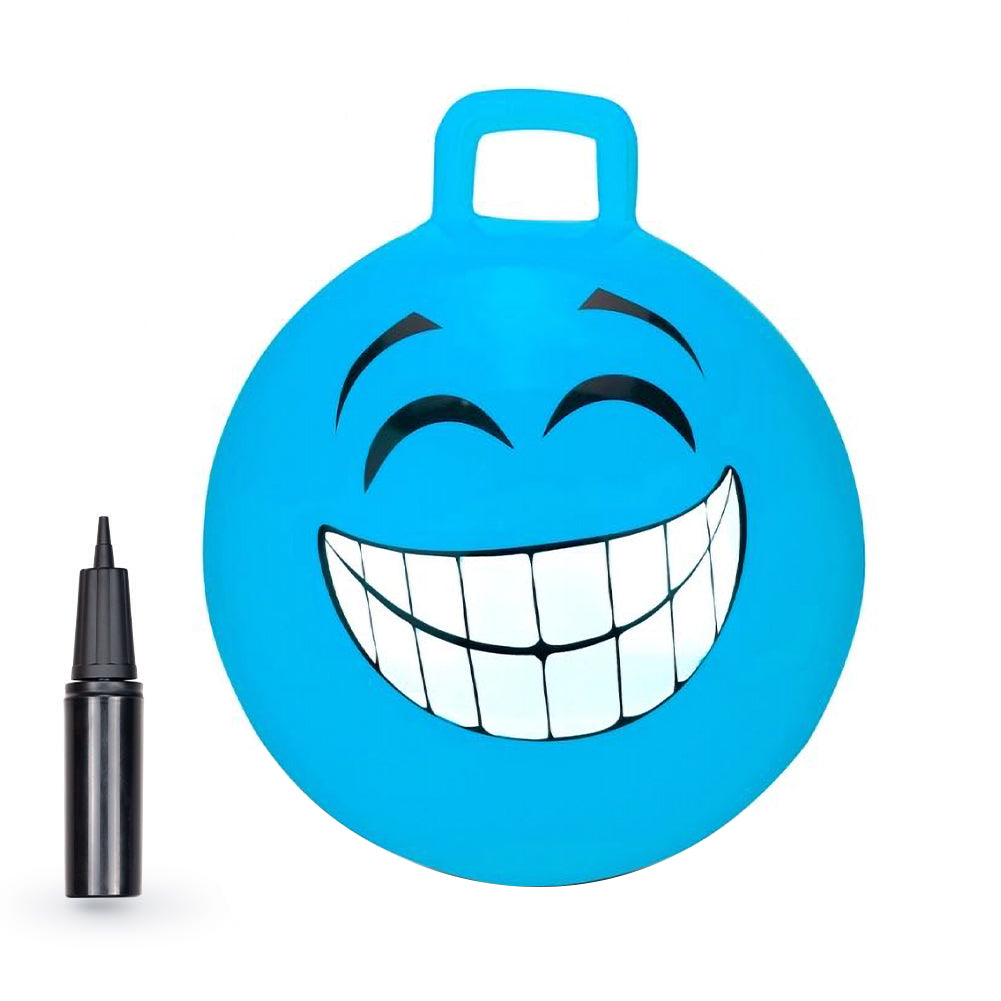 BounceZiez Inflatable Bouncy Hopper Ball with Pump - Blue Grinning Smile - 18" or 20"