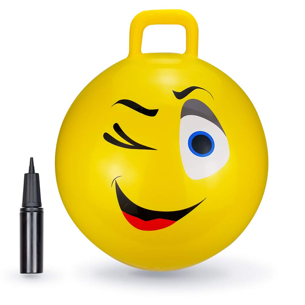 BounceZiez Inflatable Bouncy Hopper Ball with Pump - Yellow Wink - 18"