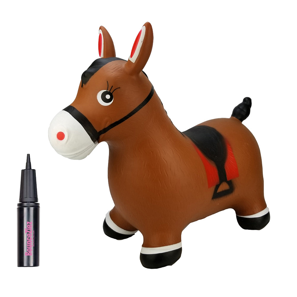 BounceZiez Inflatable Bouncy Ride-On Hopper with Pump - Brown Horse